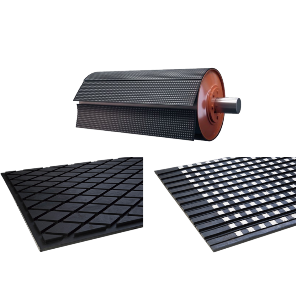 Modulares y producidas en el ancho del tambor, son fácilmente aplicables, permiten revestir el tambor en el local y evitan la pérdida de tiempo con el desmontaje del equipo. Pueden suministrarse con capa CN (autovulcanizante) para una mayor facilidad de aplicación y aumento considerable en la adhesión metal x caucho. También para vulcanizado en caliente.